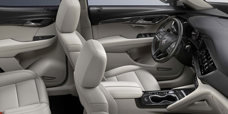 This compact SUV seats up to five people, including the driver. You can choose from two colors for the interior: whisper beige or ebony. With eight-way power for adjustments and heated front seats, you and your passenger can ride in comfort. If you choose the Avenir trim, you can get massage controls for the driver seat. The rear seats fold to give you extra cargo space to improve the model's functionality. Buick has cargo covers, nets, and organizers available for you to add to your cargo space.