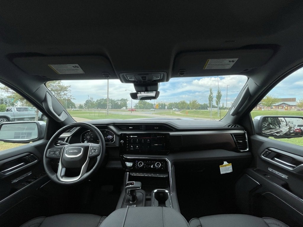Genuine Wood Inserts, Sierra 1500 Denali, 4D Crew Cab, EcoTec3 6.2L V8, 10-Speed Automatic, 4WD, Onyx Black, Jet Blk Forge Perforated Leather, 120-Volt Bed Mounted Power Outlet, 120-Volt Interior Power Outlet, 170 Amp Alternator, 4-Wheel Disc Brakes, Adaptive suspension, Alloy wheels, AM/FM radio: SiriusXM with 360L, Apple CarPlay/Android Auto, Auto High-beam Headlights, Auto-Locking Rear Differential, Automatic temperature control, Auxiliary External Transmission Oil Cooler, Bed View Camera, Chrome Recovery Hooks, Deep-Tinted Glass, Driver Memory, Dual Active Exhaust, Electric Rear-Window Defogger, Floor-Mounted Center Console, Following Distance Indicator, Forge Perforated Leather Seat Trim, Forward Collision Alert, Front dual zone A/C, Front fog lights, Front Pedestrian Braking, Front Rain-Sensing Wipers, Garage door transmitter, HD Surround Vision, Heated 2nd Row Outboard Seats, Heated door mirrors, Heated steering wheel, Heavy-Duty Air Filter, Hill Descent Control, Hitch Guidance, Hitch View, Illuminated entry, Integrated Trailer Brake Controller, LED Cargo Area Lighting, Memory seat, Multicolor 15 Diagonal Head-Up Display, Navigation System, OnStar Services Capable, Overhead console, Perimeter Lighting, Power Door Locks, Power door mirrors, Preferred Equipment Group 5SA, Premium Bose 7-Speaker Sound System, Push Button Start, Radio: Premium GMC Infotainment Audio System, Rear Camera Mirror, Rear Cross Traffic Braking, Rear Pedestrian Detection, Rear step bumper, Rear Wheelhouse Liners, Remote Vehicle Starter System, Security system, Steering Wheel Audio Controls, Super Cruise, Technology Package, Trailer Camera Provisions, Trailer Side Blind Zone Alert, Trailering Package, Universal Home Remote, Wi-Fi Hotspot Capable, Wireless Apple CarPlay/Wireless Android Auto, Wireless Charging.