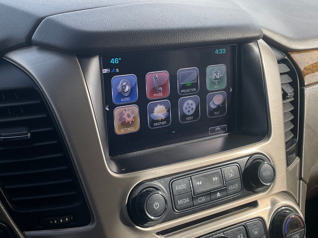 4WD, 10 Speakers, 17 Disc/Disc VAC Power Brakes, 3.23 Axle Ratio, 3rd Row DVD Screen, 3rd row seats: split-bench, 4-Wheel Disc Brakes, 5 Auxiliary 12-volt Power Outlets, ABS brakes, Adaptive suspension, Adjustable pedals, Air Conditioning, Alloy wheels, AM/FM radio: SiriusXM, Apple CarPlay/Android Auto, Auto High-beam Headlights, Auto-dimming door mirrors, Auto-dimming Rear-View mirror, Automatic temperature control, Black Assist Steps w/Chrome Strip, Bodyside moldings, Bose Centerpoint Premium 10-Speaker Surround Sound, Brake assist, Bumpers: body-color, CD Player, CD player, Compass, Delay-off headlights, Driver door bin, Driver vanity mirror, Dual front impact airbags, Dual front side impact airbags, Electronic Stability Control, Emergency communication system: OnStar Guidance, Enhanced Driver Alert Package, Exterior Parking Camera Rear, Forward Collision Alert Sensor Indicator, Front anti-roll bar, Front Bucket Seats, Front Center Armrest, Front dual zone A/C, Front fog lights, Front reading lights, Front wheel independent suspension, Full-Feature Reclining Bucket Seats, Fully automatic headlights, Garage door transmitter, Genuine wood console insert, Genuine wood dashboard insert, Genuine wood door panel insert, Hands Free Power Liftgate, Heads-Up Display, Heated & Ventilated Driver & Front Passenger Seats, Heated door mirrors, Heated front seats, Heated Leather-Wrapped Steering Wheel, Heated rear seats, Heated steering wheel, High-Intensity Discharge Headlights, Illuminated entry, Inside Rear-View Auto-Dimming Mirror, Integrated Trailer Brake Controller, Intellibeam Automatic High Beam On/Off Headlamps, Lane Keep Assist, Leather Shift Knob, License Plate Front Mounting Package, Low Speed Forward Automatic Braking, Low tire pressure warning, Magnetic Ride Control Suspension Package, Memory Package, Memory seat, Navigation System, NavTraffic, Occupant sensing airbag, OnStar Basic Plan For 5 Years, OnStar w/4G LTE, Open Road Package, Outside temperature display, Overhead airbag, Overhead console, Panic alarm, Passenger door bin, Passenger vanity mirror, Passive Entry System, Pedal memory, Perforated Leather-Appointed Seat Trim, Power door mirrors, Power driver seat, Power Liftgate, Power passenger seat, Power Release Second Row Bucket Seats, Power steering, Power Tilt & Telescopic Steering Column, Power Tilt-Sliding Sunroof w/Express-Open/Close, Power windows, Power-Adjustable Pedals For Accelerator & Brake, Preferred Equipment Group 5SA, Premium audio system: IntelliLink, Push Button Keyless Start, Radio: AM/FM/SiriusXM w/Navigation, Rain sensing wipers, Rear air conditioning, Rear anti-roll bar, Rear Cross-Traffic Alert, Rear reading lights, Rear Seat Blu-Ray/DVD Entertainment System, Rear window defroster, Rear window wiper, Remote Keyless Entry, Remote keyless entry, Roof rack: rails only, Security system, Side Blind Zone Alert w/Lane Change Alert, SiriusXM Satellite Radio, Speed control, Speed-sensing steering, Split folding rear seat, Spoiler, Steering wheel memory, Steering wheel mounted audio controls, Tachometer, Telescoping steering wheel, Tilt steering wheel, Traction control, Trip computer, Turn signal indicator mirrors, Universal Home Remote, Variably intermittent wipers, Ventilated front seats, Voltmeter, Wheels: 20 x 9 Ultra Bright Machined Aluminum, Wheels: 22 x 8.5 Ultra-Bright Aluminum, Wireless Charging, 4WD.