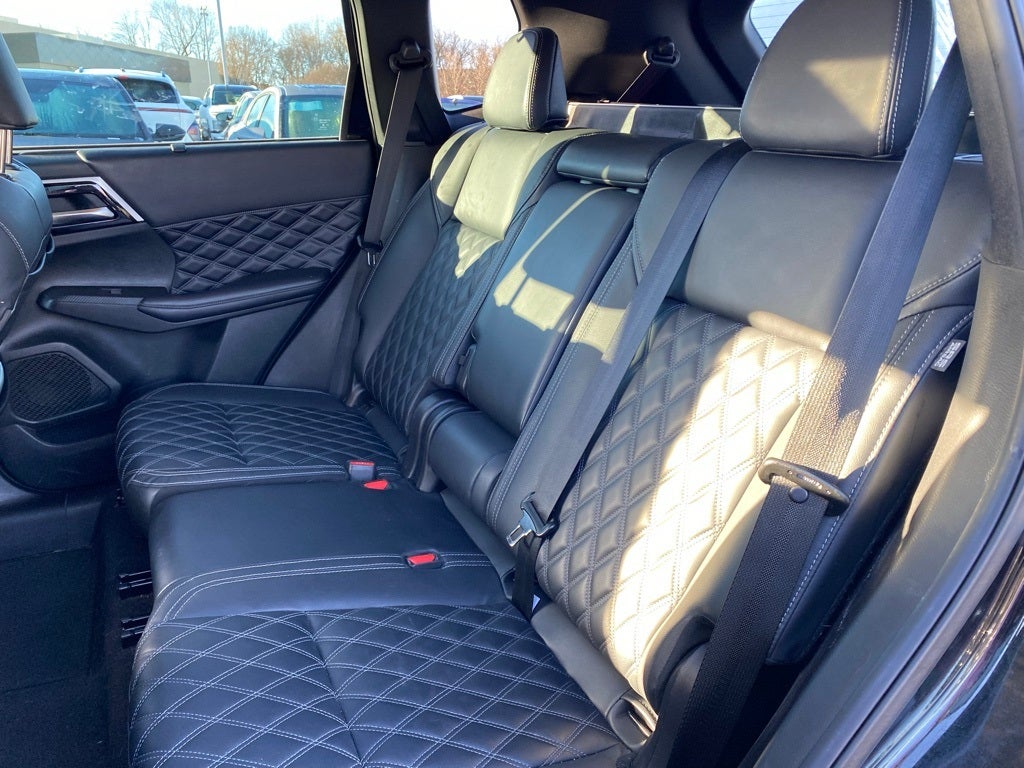 THE HOME OF SALES TAX PAID ON NEW. CRAIN COMMITMENT ON USED. HONEST, TRANSPARENT, FRICTIONLESS! CRA, 3rd row seats: split-bench, 4-Wheel Disc Brakes, 5.694 Axle Ratio, 6 Speakers, ABS brakes, Air Conditioning, Alloy wheels, AM/FM radio: SiriusXM, Android Auto & Apple CarPlay, Auto High-beam Headlights, Auto-dimming Rear-View mirror, Automatic temperature control, Brake assist, Bumpers: body-color, Driver door bin, Driver vanity mirror, Dual front impact airbags, Dual front side impact airbags, Electronic Stability Control, Emergency communication system: Mitsubishi Connect w/ 24-month trial, Exterior Parking Camera Rear, Four wheel independent suspension, Front anti-roll bar, Front Bucket Seats, Front Center Armrest w/Storage, Front dual zone A/C, Front fog lights, Front reading lights, Fully automatic headlights, Heated door mirrors, Heated Front Bucket Seats, Heated front seats, Heated rear seats, Illuminated entry, Knee airbag, Leather Seat Trim, Leather Shift Knob, Leather steering wheel, Low tire pressure warning, Memory seat, Navigation System, Occupant sensing airbag, Outside temperature display, Overhead airbag, Overhead console, Panic alarm, Passenger door bin, Passenger vanity mirror, Power door mirrors, Power driver seat, Power Liftgate, Power passenger seat, Power steering, Power windows, Radio data system, Radio: AM/FM 9.0 Navigation w/Smartphone Link, Rain sensing wipers, Rear air conditioning, Rear anti-roll bar, Rear seat center armrest, Rear side impact airbag, Rear window defroster, Rear window wiper, Reclining 3rd row seat, Remote keyless entry, Security system, Speed control, Speed-Sensitive Wipers, Split folding rear seat, Spoiler, Steering wheel mounted audio controls, Tachometer, Telescoping steering wheel, Tilt steering wheel, Traction control, Trip computer, Turn signal indicator mirrors, Variably intermittent wipers, Wheels: 20 Two-Tone Alloy.