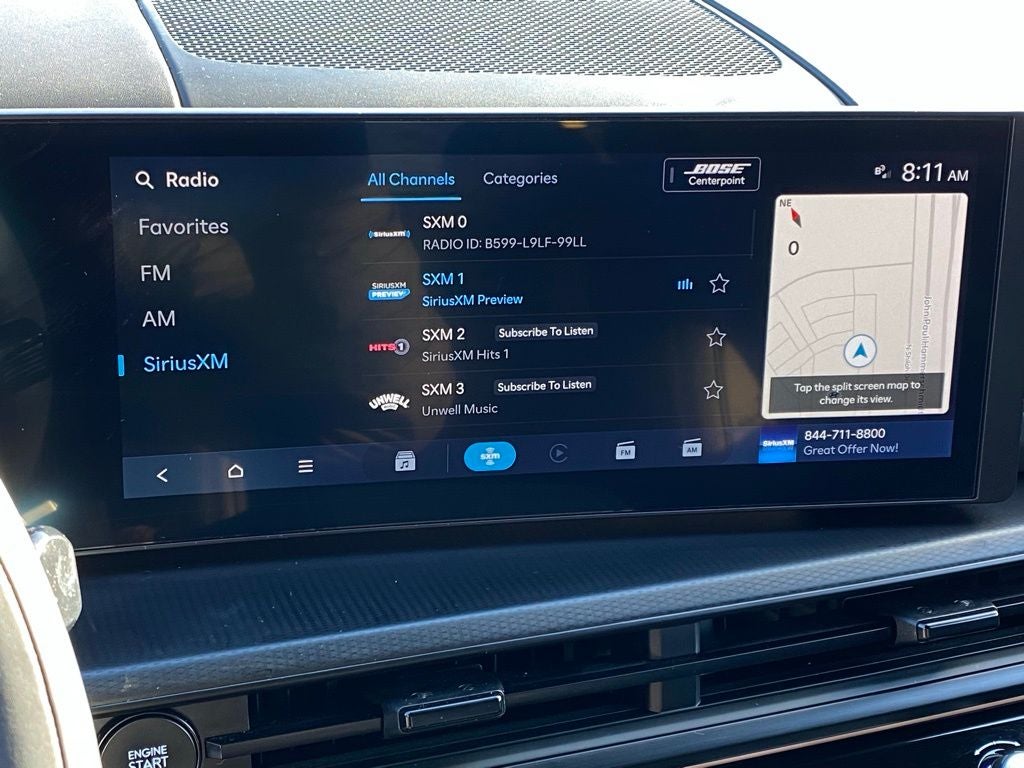 - Radio: AM/FM/HD Bose Premium Audio System -inc: 12 speakers including subwoofer, external amplifier, 12.3" wide touchscreen, Apple CarPlay and Android Auto, Bluetooth® hands-free w/wireless audio streaming, dynamic voice recognition, USB connectivity, SiriusXM, Blue Link connected car system, navigation system including traffic flow w/incident data via HD Radio (HERE) and rear seat quiet mode