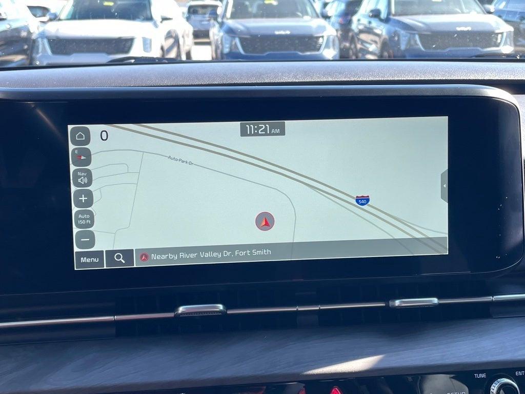 KIA Certified Eligible Certified, 10 Speakers, 3.51 Axle Ratio, 3rd row seats: split-bench, 4-Wheel Disc Brakes, ABS brakes, Air Conditioning, Alloy wheels, AM/FM radio: SiriusXM, Apple CarPlay & Android Auto, Artificial Leather Seat Trim, Auto High-beam Headlights, Automatic temperature control, Brake assist, Bumpers: body-color, Carpeted Floor Mats (8-Passenger), Compass, Delay-off headlights, Driver door bin, Driver vanity mirror, Dual front impact airbags, Dual front side impact airbags, Dual Screen Rear Seat Entertainment System, Electronic Stability Control, Emergency communication system, Exterior Parking Camera Rear, Four wheel independent suspension, Front anti-roll bar, Front Bucket Seats, Front Center Armrest, Front dual zone A/C, Front fog lights, Front reading lights, Fully automatic headlights, Heated & Ventilated Front Bucket Seats, Heated door mirrors, Heated front seats, Illuminated entry, Knee airbag, Leather Shift Knob, Leather steering wheel, Low tire pressure warning, Memory seat, Navigation System, Occupant sensing airbag, Outside temperature display, Overhead airbag, Overhead console, Panic alarm, Passenger door bin, Passenger vanity mirror, Power door mirrors, Power driver seat, Power Liftgate, Power passenger seat, Power steering, Power windows, Radio: AM/FM/HD Audio System, Rear air conditioning, Rear anti-roll bar, Rear reading lights, Rear Seat Entertainment Package, Rear window defroster, Rear window wiper, Reclining 3rd row seat, Remote keyless entry, Roof rack: rails only, Security system, Speed control, Speed-sensing steering, Split folding rear seat, Spoiler, Steering wheel mounted audio controls, Tachometer, Telescoping steering wheel, Tilt steering wheel, Traction control, Trip computer, Turn signal indicator mirrors, Variably intermittent wipers, Ventilated front seats, Wheels: 7.5J x 19 Black Painted Alloy.