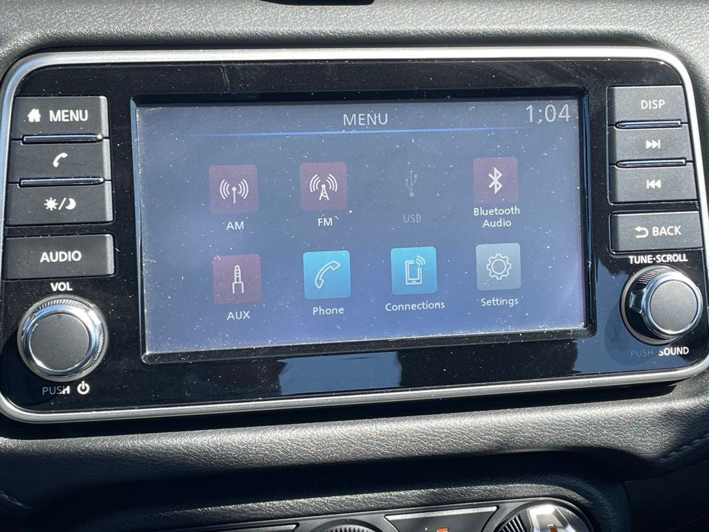 15 Steel Wheels w/Full Wheel Covers, 16 Alloy Wheels, 4 Speakers, 60/40 Split Rear Seat, ABS brakes, Air Conditioning, AM/FM radio, Auto High-beam Headlights, Brake assist, Bumpers: body-color, Carpeted Floor Mats, Cloth Seat Trim, Driver door bin, Driver vanity mirror, Dual front impact airbags, Dual front side impact airbags, Electronic Stability Control, Front anti-roll bar, Front Bucket Seats, Front reading lights, Front wheel independent suspension, Fully automatic headlights, Illuminated entry, Knee airbag, Low tire pressure warning, NissanConnect w/Apple CarPlay & Android Auto, Occupant sensing airbag, Outside temperature display, Overhead airbag, Panic alarm, Passenger door bin, Passenger vanity mirror, Power door mirrors, Power steering, Power windows, Radio data system, Radio: AM/FM Audio System, Rear Parking Sensors, Rear side impact airbag, Rear window defroster, S Plus Package, Shopping Bag Hooks, Speed control, Steering wheel mounted audio controls, Tachometer, Telescoping steering wheel, Tilt steering wheel, Traction control, Trip computer, Trunk Net, Trunk Package, Variably intermittent wipers.