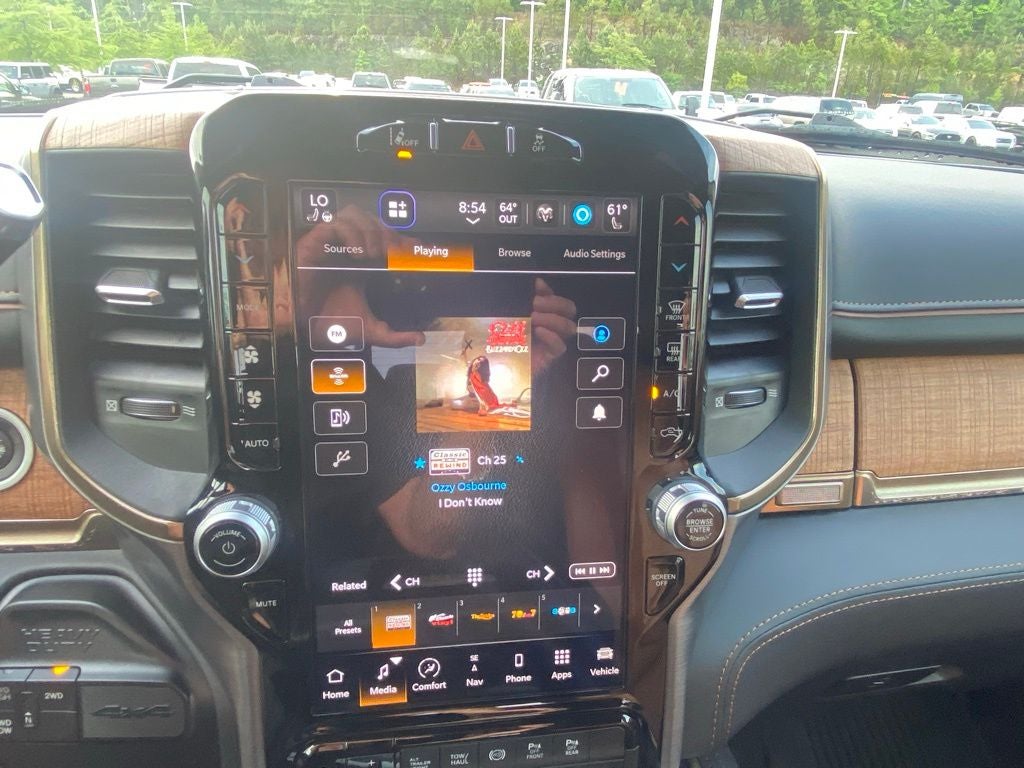 Stepping inside, you'll be captivated by the Laramie Longhorn's luxurious interior. Premium Filigree Leather Seats, Heated and Ventilated Front Seats, and a Heated Steering Wheel create an unparalleled level of comfort and refinement. The 12 Touchscreen Display with Uconnect 5 Navigation, SiriusXM with 360L, and Alexa Built-In seamlessly integrate your digital life, keeping you connected and entertained on the go.