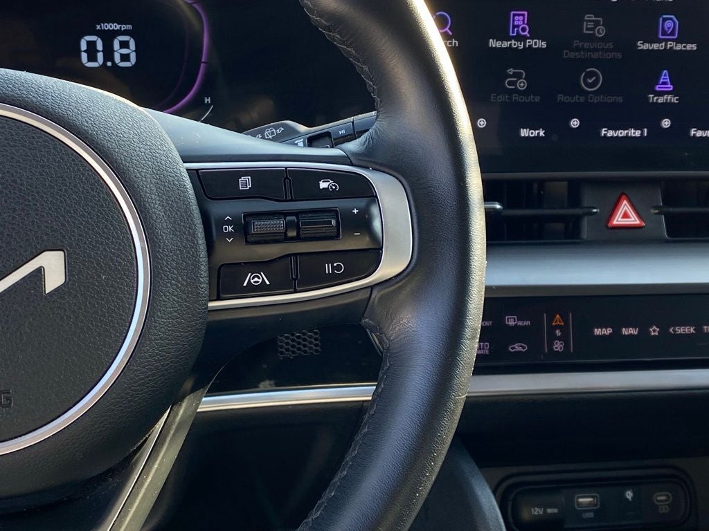 - Radio: AM/FM/HD Audio System -inc: 12.3" touchscreen, navigation, satellite radio, 6 speakers, Apple Carplay and Android Auto, Kia Connect, WiFi, map OTA, voice recognition, USB, steering wheel audio controls and Bluetooth® Hands-free phone and streaming audio