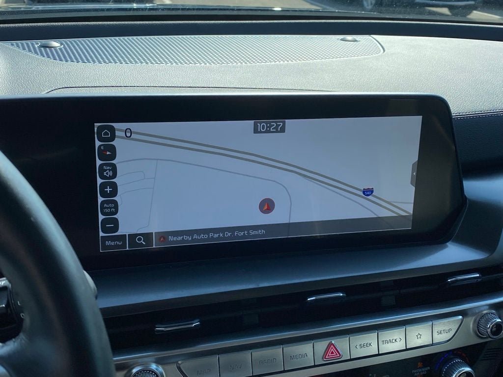 KIA Certified Eligible Certified, 3rd row seats: split-bench, 4-Wheel Disc Brakes, 6 Speakers, ABS brakes, Air Conditioning, Alloy wheels, AM/FM radio: SiriusXM, Apple CarPlay & Android Auto, Auto High-beam Headlights, Automatic temperature control, Brake assist, Bumpers: body-color, Carpeted Floor Mats, Cross Bars, Delay-off headlights, Driver door bin, Driver vanity mirror, Dual front impact airbags, Dual front side impact airbags, Electronic Stability Control, Emergency communication system: 911 Connect, Exterior Parking Camera Rear, Four wheel independent suspension, Front anti-roll bar, Front Bucket Seats, Front Center Armrest, Front dual zone A/C, Front reading lights, Fully automatic headlights, Heated door mirrors, Heated Front Bucket Seats, Heated front seats, Illuminated entry, Knee airbag, Leather Shift Knob, Leather steering wheel, Low tire pressure warning, Navigation System, Occupant sensing airbag, Outside temperature display, Overhead airbag, Overhead console, Panic alarm, Passenger door bin, Passenger vanity mirror, Power door mirrors, Power driver seat, Power Liftgate, Power moonroof, Power steering, Power windows, Radio data system, Radio: AM/FM Display Audio System, Rear air conditioning, Rear anti-roll bar, Rear audio controls, Rear reading lights, Rear side impact airbag, Rear window defroster, Rear window wiper, Reclining 3rd row seat, Remote keyless entry, Security system, Speed control, Speed-sensing steering, Split folding rear seat, Spoiler, Steering wheel mounted audio controls, SynTex Synthetic Leather Seat Trim, Tachometer, Telescoping steering wheel, Tilt steering wheel, Traction control, Trip computer, Turn signal indicator mirrors, Variably intermittent wipers, Wheels: 20 x 7.5 Black Finish.